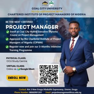 Coal City University, in collaboration with the Chartered Institute of Project Managers of Nigeria (CIPMN), presents a Hybrid Executive Diploma Course in Project Management.